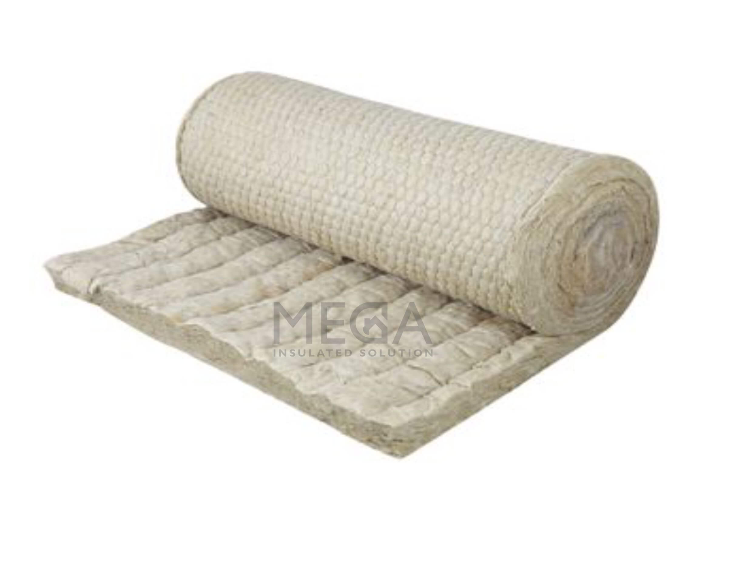 Bông khoáng Rockwool – Dạng cuộn sử dụng đá bazan chất lượng cao làm nguyên liệu thô, có nhiệt độ nóng chảy trên 1000oC và có tác dụng tốt trong việc cách nhiệt và hấp thụ âm thanh.